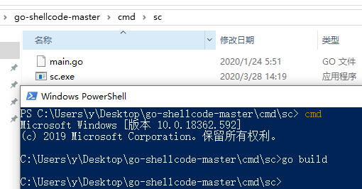 编译后得到go-sc.exe