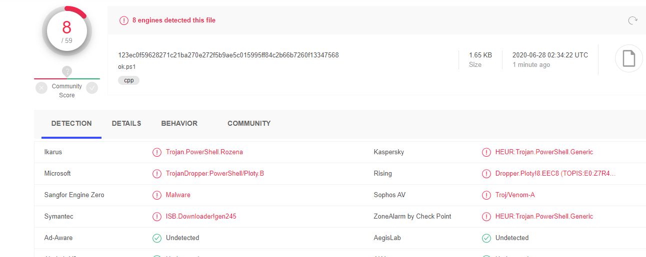 结果发现还是被查杀了这表明大多数检测来自PowerShell模板,而不是Shellcode本身。
