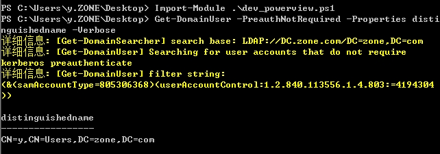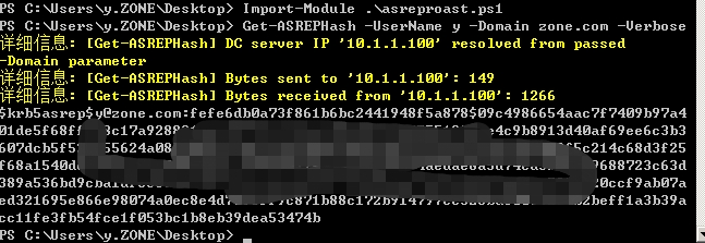 >Get-ASREPHash -UserName y -Domain zone.com -Verbose