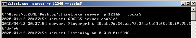 >chisel.exe server -p 12346 --socks5攻击机执行