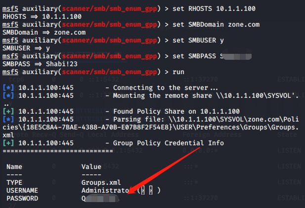 使用msf的auxiliary/scanner/smb/smb_enum_gpp模块
