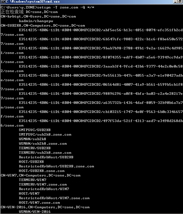 >setspn -T 域名 -Q */*