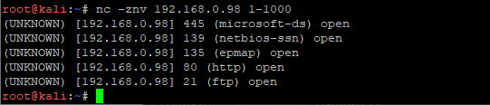 >nc -v -w 1 192.168.0.110 -z 1-1000