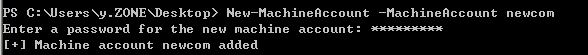 >New-MachineAccount –MachineAccount newcom -Password $pass