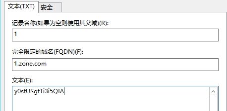 添加一条域名txt记录,这里在本地设置,正常是在域名商的网站里配置