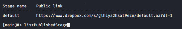 使用命令listPublishedStage可以看到已发布的agent生成payload