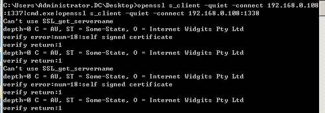>openssl s_client -quiet -connect 192.168.0.108:1337|cmd.exe|openssl s_client -quiet -connect 192.168.0.108:1338