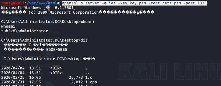 >openssl s_server -quiet -key key.pem -cert cert.pem -port 1338