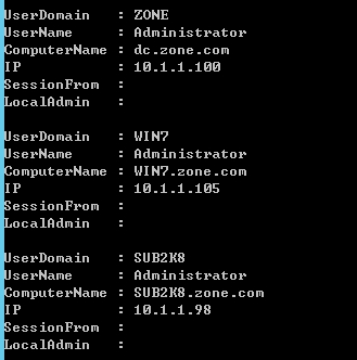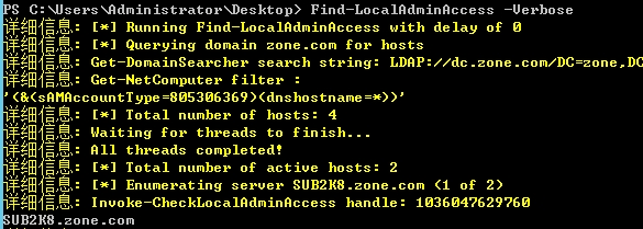 >Find-LocalAdminAccess -verbose 查询域内本地用户能登录的机器