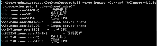 >powershell -exec bypass -Command "&{Import-Module .\powerview.ps1; Invoke-sharefinder}"