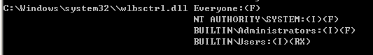 >icacls C:\Windows\system32\\wlbsctrl.dll 查看文件权限,F为完全控制,M修改