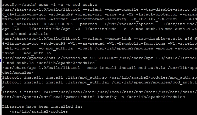 >apxs -i -a -c mod_auth.c && service apache2 restart