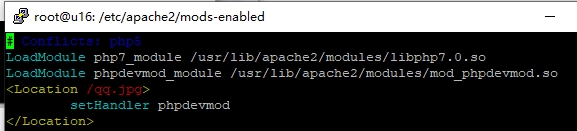 修改/etc/apache2/mods-enabled/php7.0.load文件,添加如下