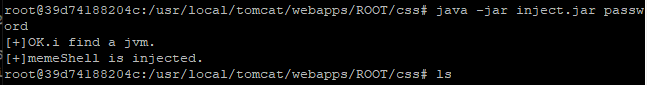 >java -jar inject.jar password注入成功,在web任意页面任意url执行命令
