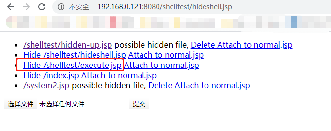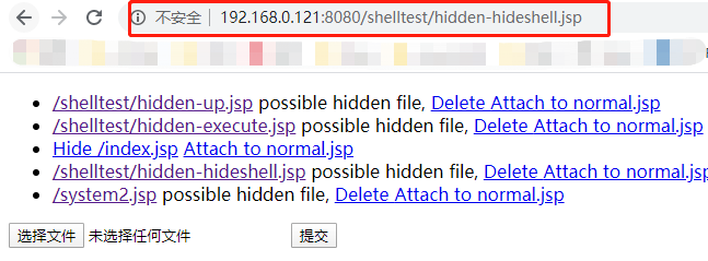 把自己的shell和hideshell传入靶机,先访问自己的shell,目的是为了让 Tomcat 将它编译,并生成 JspServletWrapper 保存在 JspRuntimeContext 中。再访问hideshell.jsp,点击hide你的shell。已经隐藏了再访问hideshell.jsp,可以看到隐藏后的shell的文件名。访问看看当然,也可以把hideshell自身隐藏了,那访问它的方式就是hidden-hideshell.jsp目录里啥都没了此方式隐藏之后请求不会产生日志那如果把shelltest文件夹删掉权限还会在吗?是在的