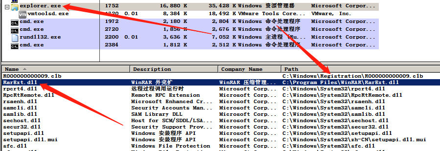 3.从已经加载的DLL列表中,查找在上述“KnownDLLs注册表项”中不存在的DLL。