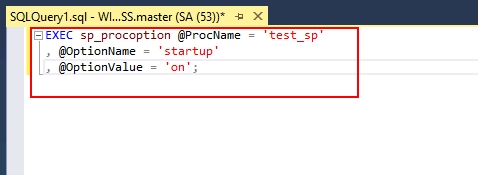 EXEC sp_procoption @ProcName = 'test_sp'