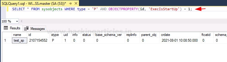 >SELECT * FROM sysobjects WHERE type = 'P' AND OBJECTPROPERTY ( id, 'ExecIsStartUp' ) = 1 ;