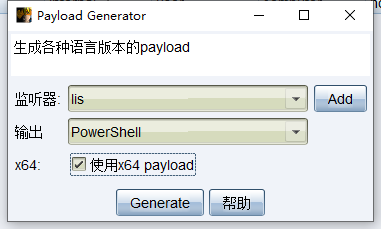 cobalt strike ->payload generator->powershell(use x64)