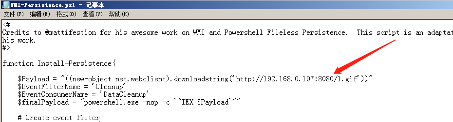 生成后地址替换进WMI-Persistence脚本内# powershell -exec bypass
