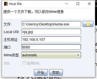attack->文件下载,exe木马指定为文件。local uri为随意文件,wmi.xsl放在web目录