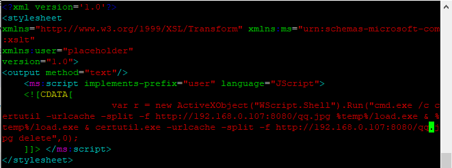 </stylesheet>WMI-Persistence脚本修改payload地址为wmi.xsl
