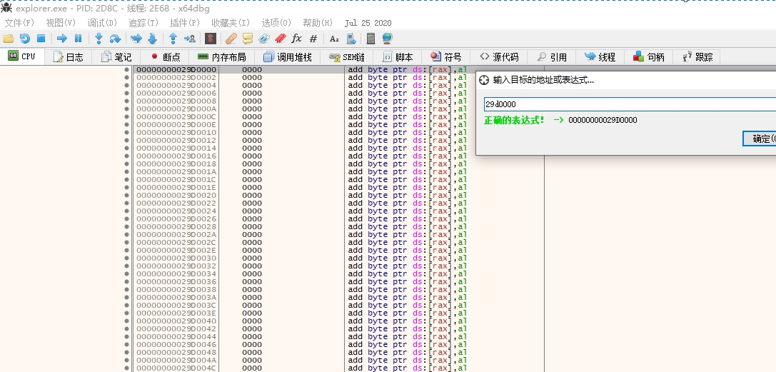 使用x64dbg附加explorer.exe进程,转到这里看看
