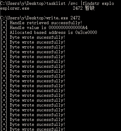 可以看到函数VirtualAllocEx已为我们在explorer.exe中分配了内存空间,我们准备写入数据。