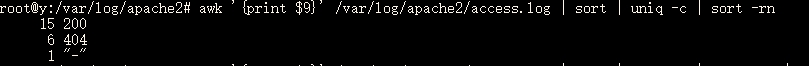 awk '{print $9}' /var/log/apache2/access.log | sort | uniq -c | sort –rn